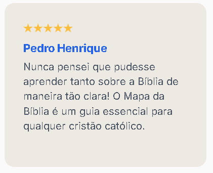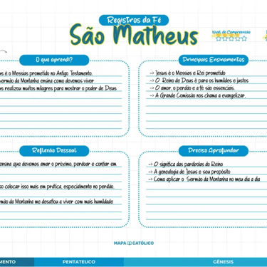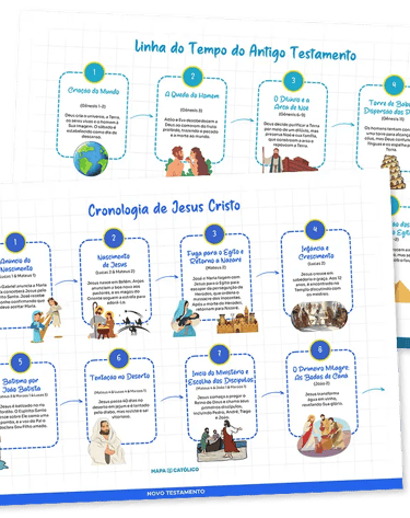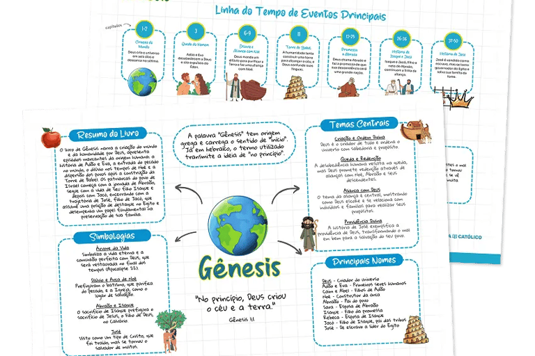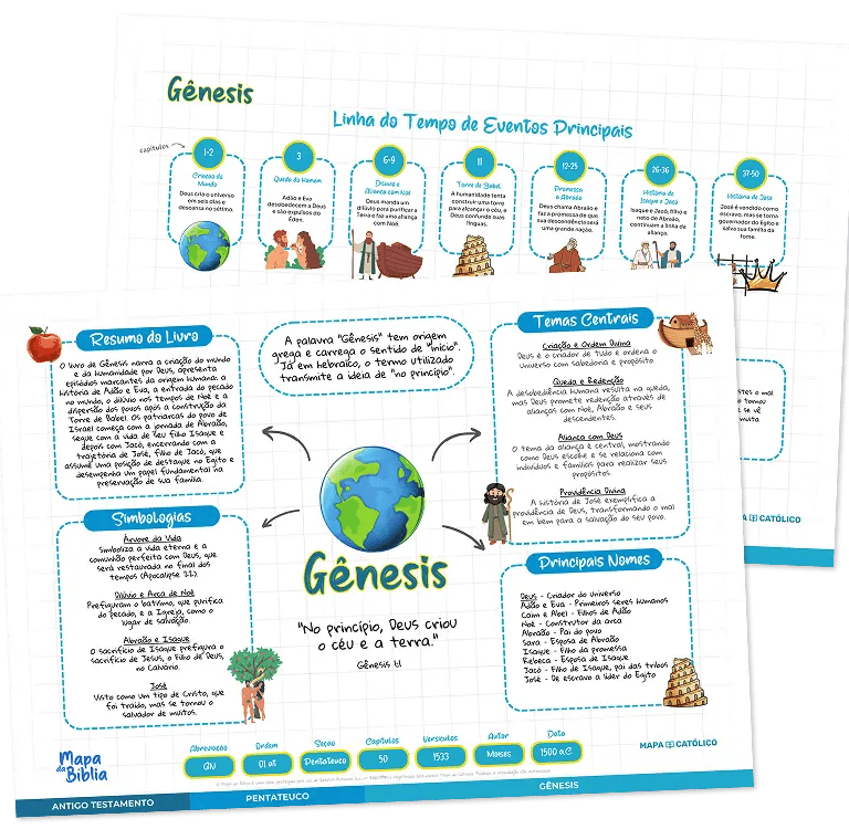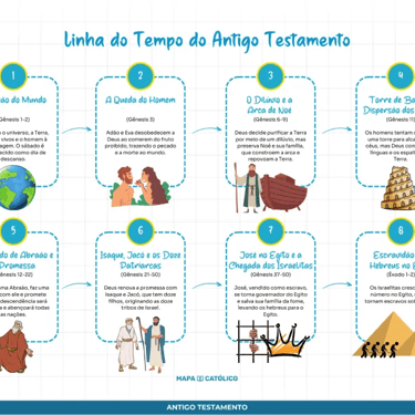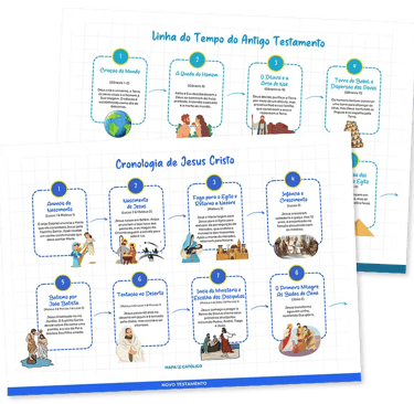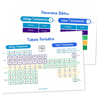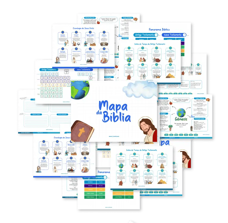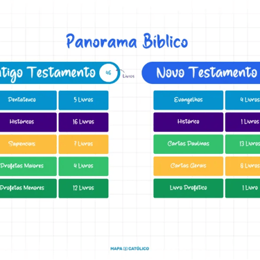 O Mapa da Bíblia são resumos visuais da Bíblia, conforme a tradição católica e a Bíblia Ave Maria, preparando você para explorar e compreender a palavra de Deus em sua totalidade — simplificando a riqueza dos ensinamentos de cada livro sagrado.